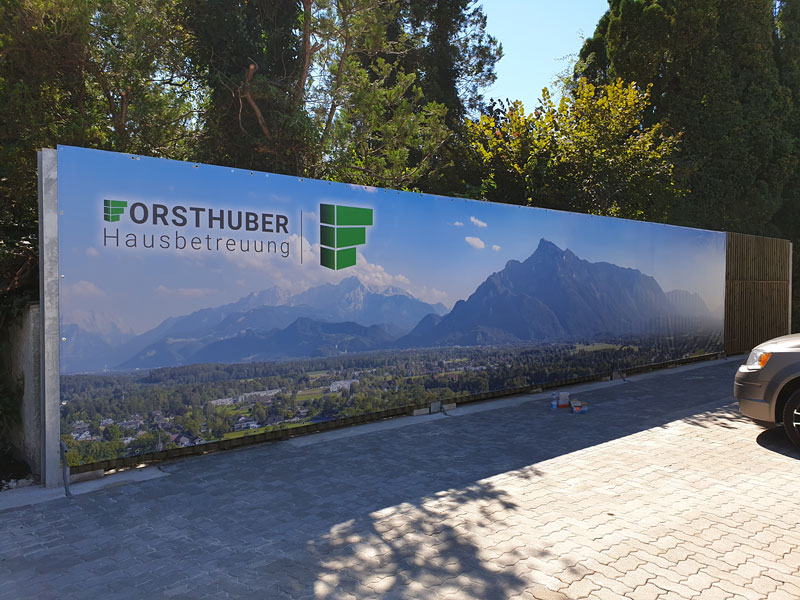 Für windstarke Gegenden können die Banner auch auf Meshgewebe gedruckt werden. Durch die feine Netzstruktur des Materials hat der Wind weniger Angriffsfläche.
